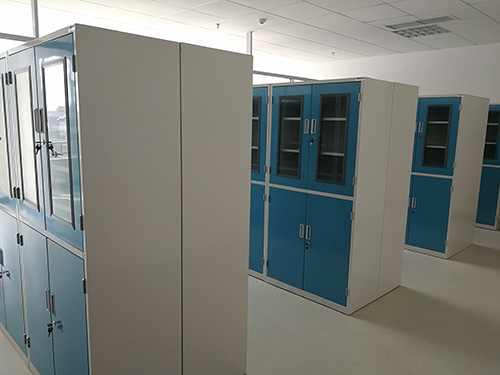 1. 柜體材質:柜體結構采用厚1.2mm的冷軋鋼板模壓成型,所有柜體表面均經過EPOXY RESIN粉末靜電噴涂處理,具有抗酸堿、防化、防潮、耐高溫以及耐磨,柜體中隔板由四個鋼制層板扣支撐,高度可任意調節,13mm可上下移動,承重為30kg。